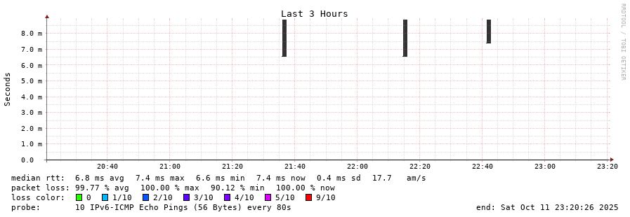 11 > 2603:10a0:f06:1200::ee (2603:10a0:f06:1200::ee) [*] 6.287ms 6.276ms 6.250ms