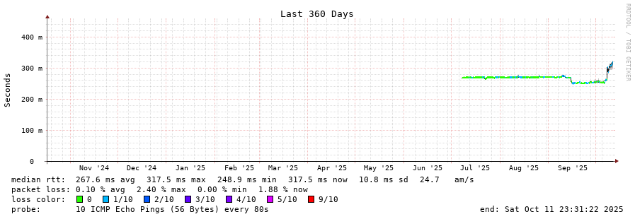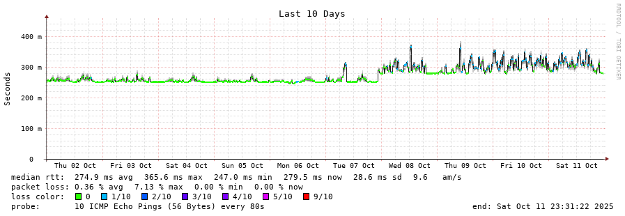 10 > koreatelecom-4766.sng.cw.net (195.2.19.66) [AS1273] 189.696ms 189.377ms 189.371ms