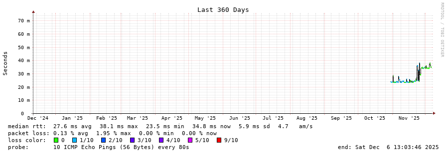 traceroute to 85.18.87.69 (85.18.87.69), 30 hops max, 60 byte packets - Generated at 2025-12-06 13:00:01