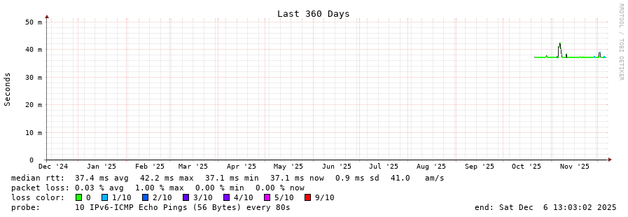 13 > 2001:978:2:8d::2 (2001:978:2:8d::2) [AS174] 37.476ms 37.401ms 37.405ms