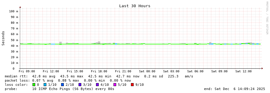 6 > be42-scr1.amq.cw.net (195.2.3.117) [AS1273] 39.870ms 38.621ms 39.243ms