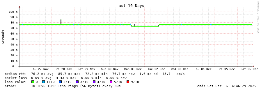 9 > 2604:2dc0:308::2:0:2b6 (2604:2dc0:308::2:0:2b6) [AS16276] 76.661ms 76.746ms 76.680ms